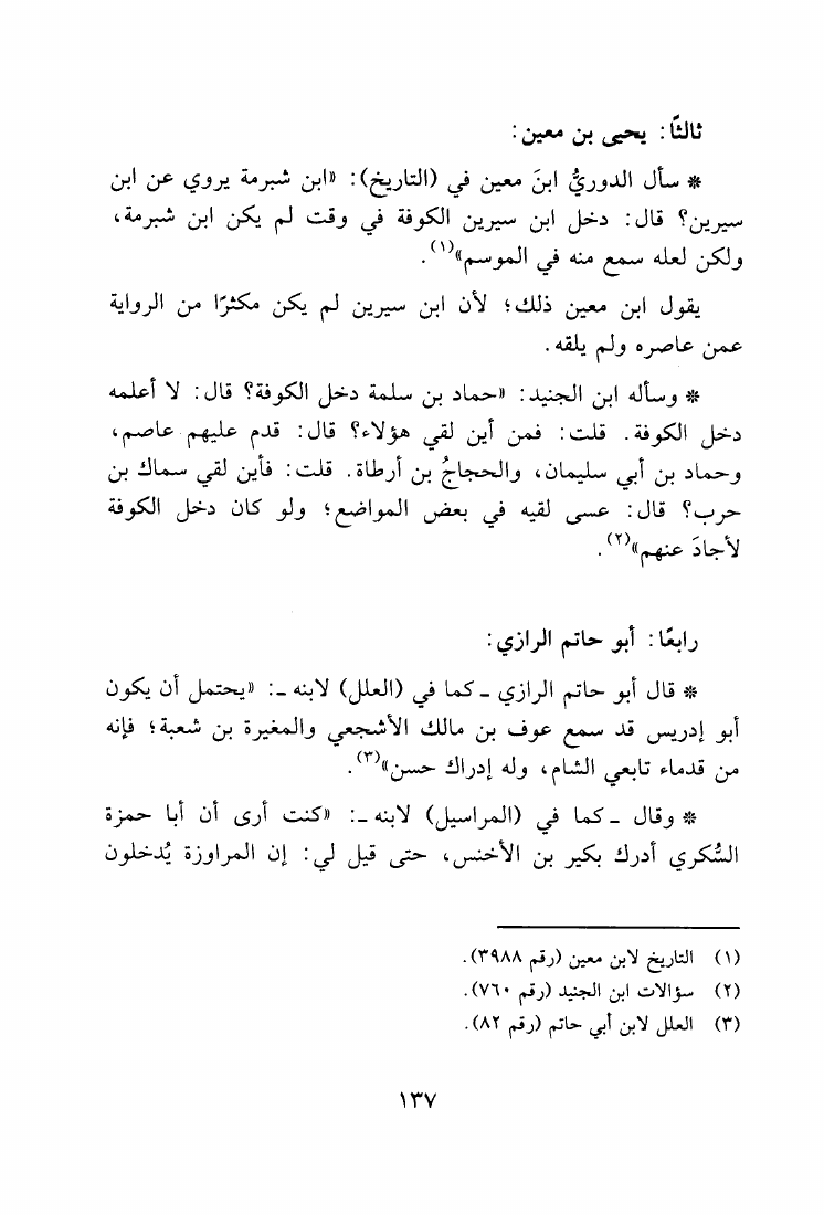 نام کتاب : إجماع المحدثين على عدم اشتراط العلم بالسماع في الحديث المعنعن بين المتعاصرين نویسنده : حاتم بن عارف بن ناصر الشريف العوني جلد : 1 صفحه : 137