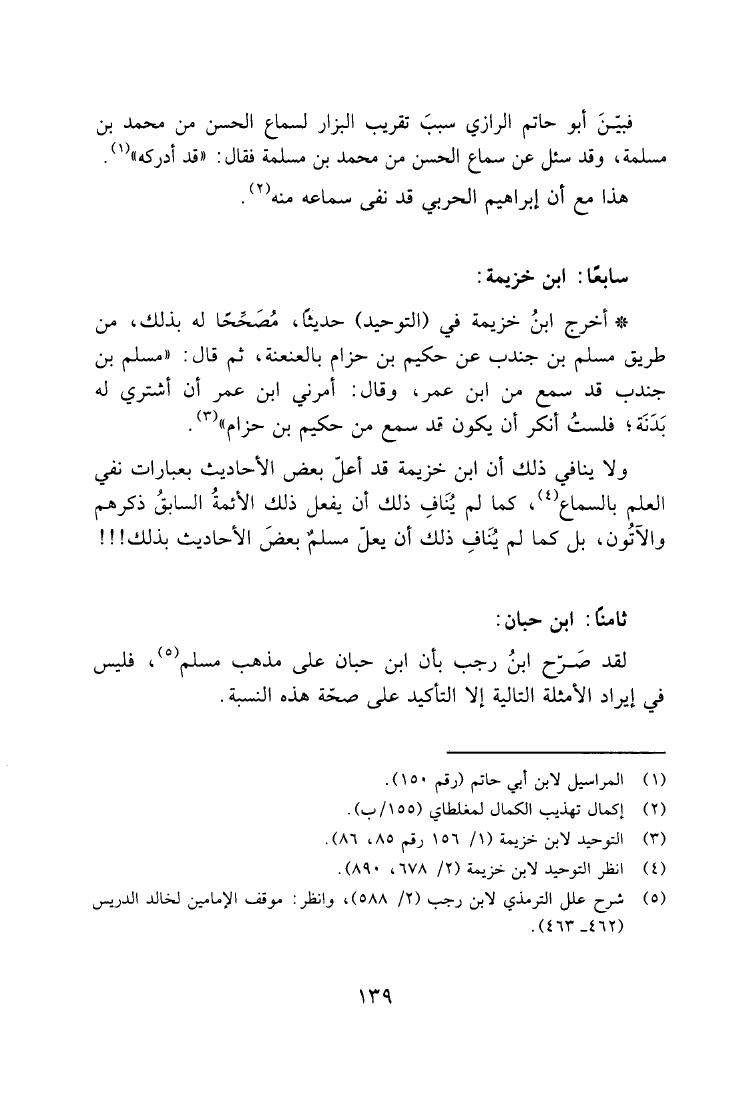 نام کتاب : إجماع المحدثين على عدم اشتراط العلم بالسماع في الحديث المعنعن بين المتعاصرين نویسنده : حاتم بن عارف بن ناصر الشريف العوني جلد : 1 صفحه : 139