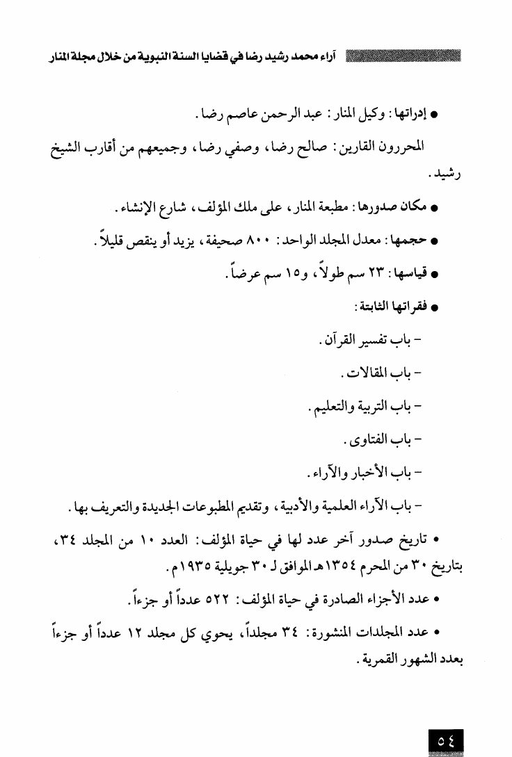 آراء محمد رشيد رضا في قضايا السنة النبوية من خلال مجلة المنار