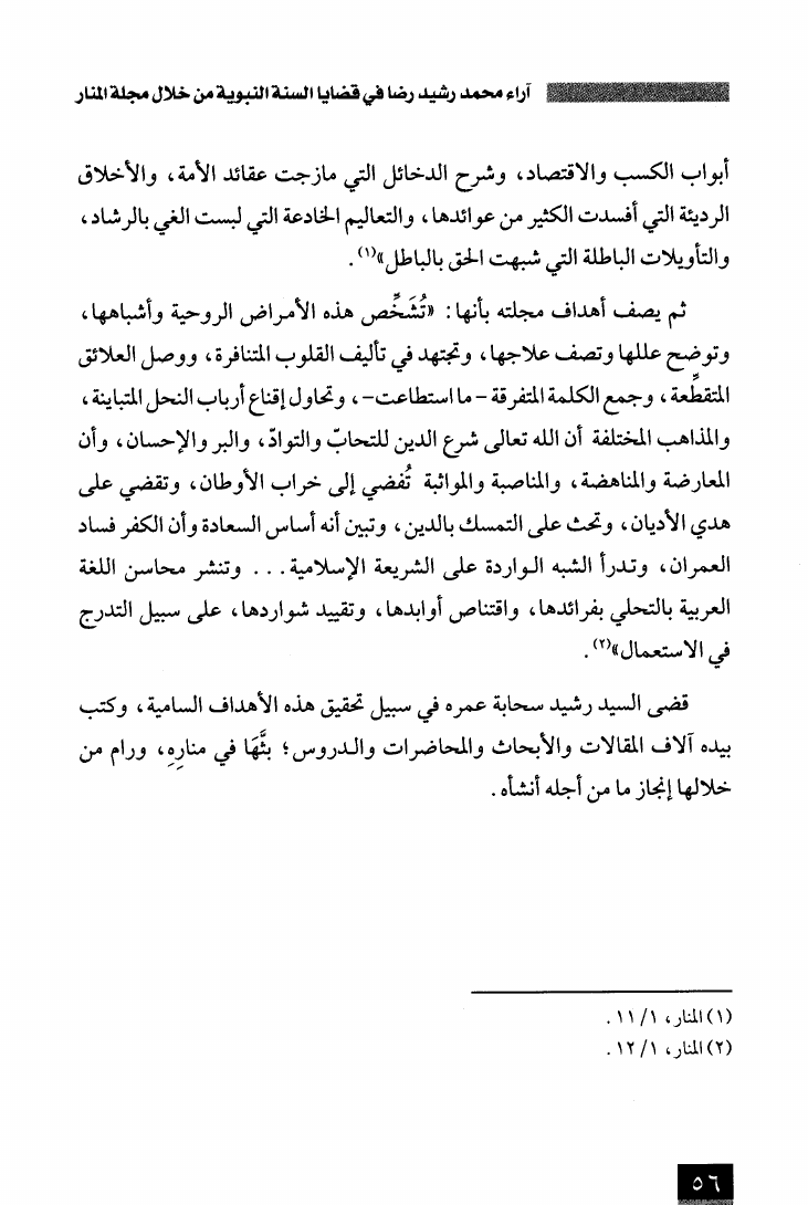آراء محمد رشيد رضا في قضايا السنة النبوية من خلال مجلة المنار