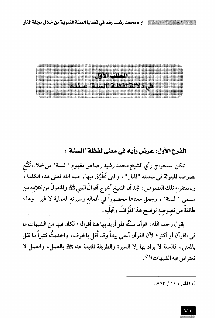 آراء محمد رشيد رضا في قضايا السنة النبوية من خلال مجلة المنار