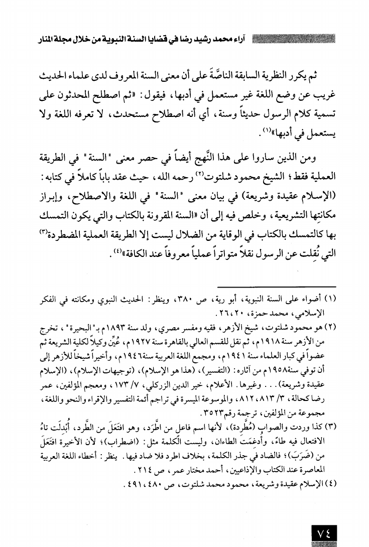 آراء محمد رشيد رضا في قضايا السنة النبوية من خلال مجلة المنار