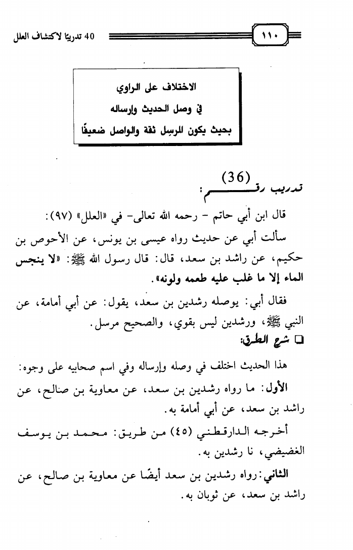 أربعون تدريبا عمليا في نقد الأسانيد والمتون واكتشاف العلل من كتاب العلل