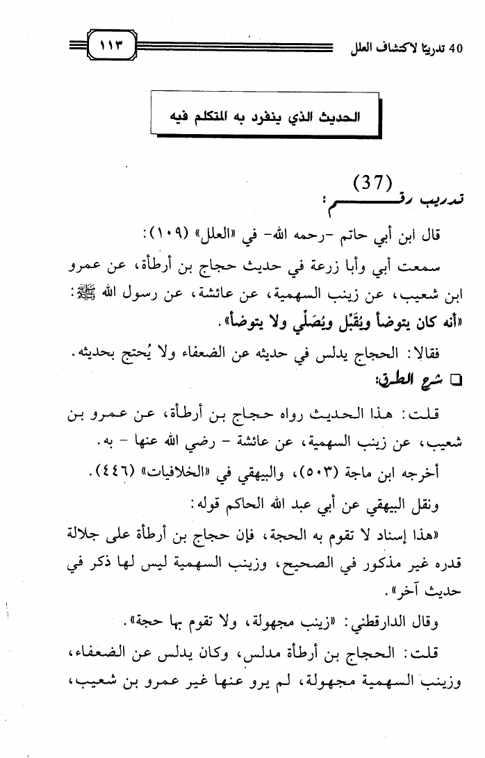 أربعون تدريبا عمليا في نقد الأسانيد والمتون واكتشاف العلل من كتاب العلل