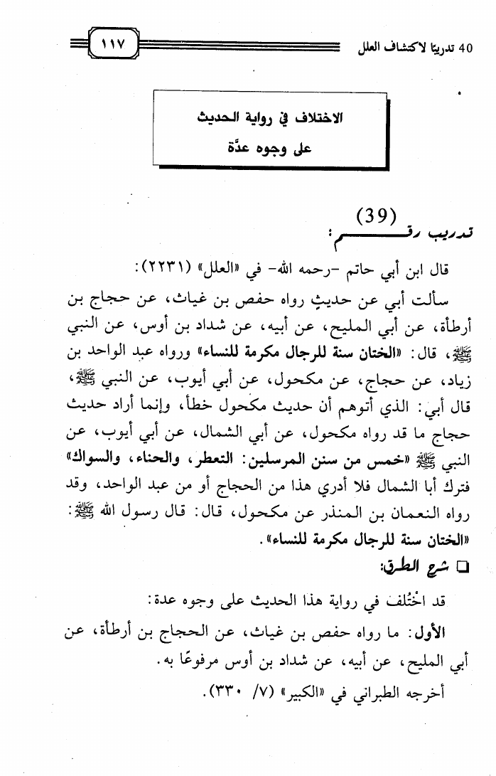 أربعون تدريبا عمليا في نقد الأسانيد والمتون واكتشاف العلل من كتاب العلل