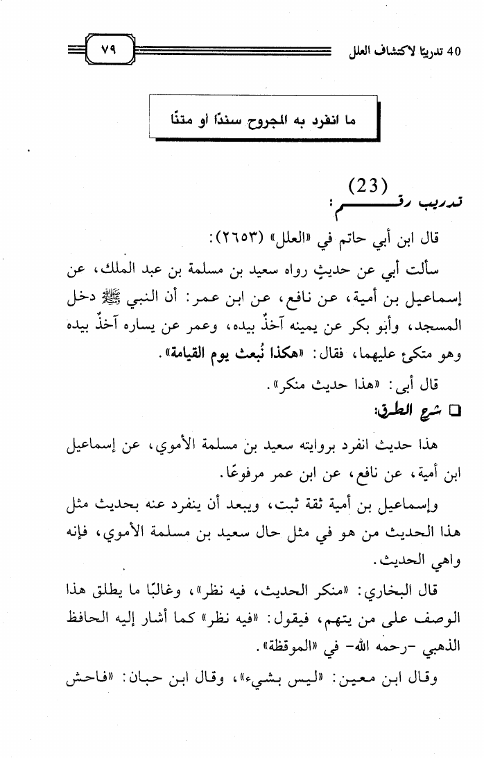 أربعون تدريبا عمليا في نقد الأسانيد والمتون واكتشاف العلل من كتاب العلل