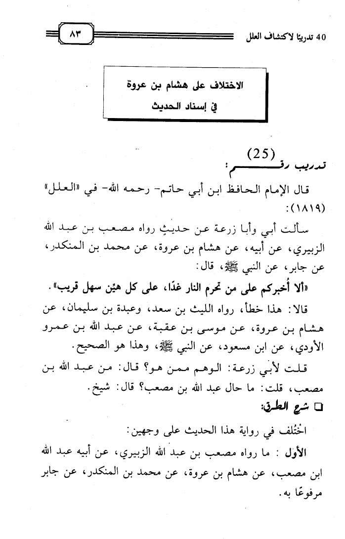 أربعون تدريبا عمليا في نقد الأسانيد والمتون واكتشاف العلل من كتاب العلل
