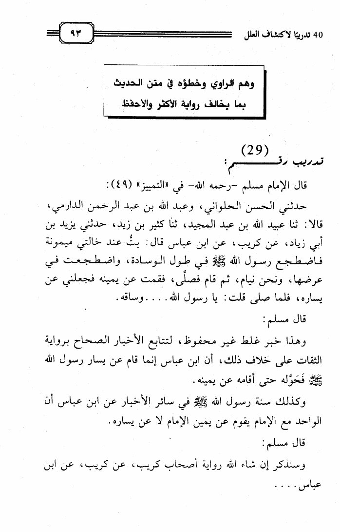 أربعون تدريبا عمليا في نقد الأسانيد والمتون واكتشاف العلل من كتاب العلل