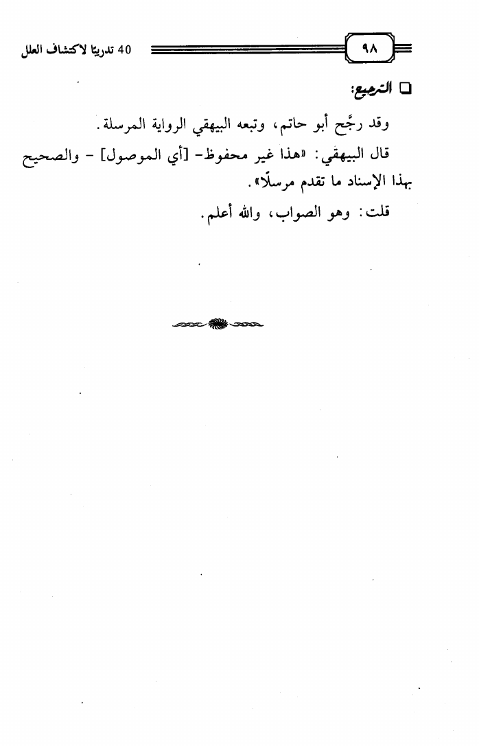 أربعون تدريبا عمليا في نقد الأسانيد والمتون واكتشاف العلل من كتاب العلل