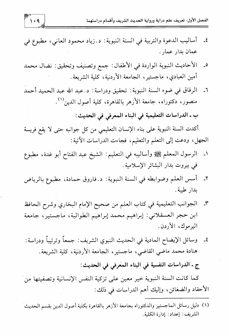الإتجاهات المعاصرة في دراسة السنة النبوية في مصر وبلاد الشام