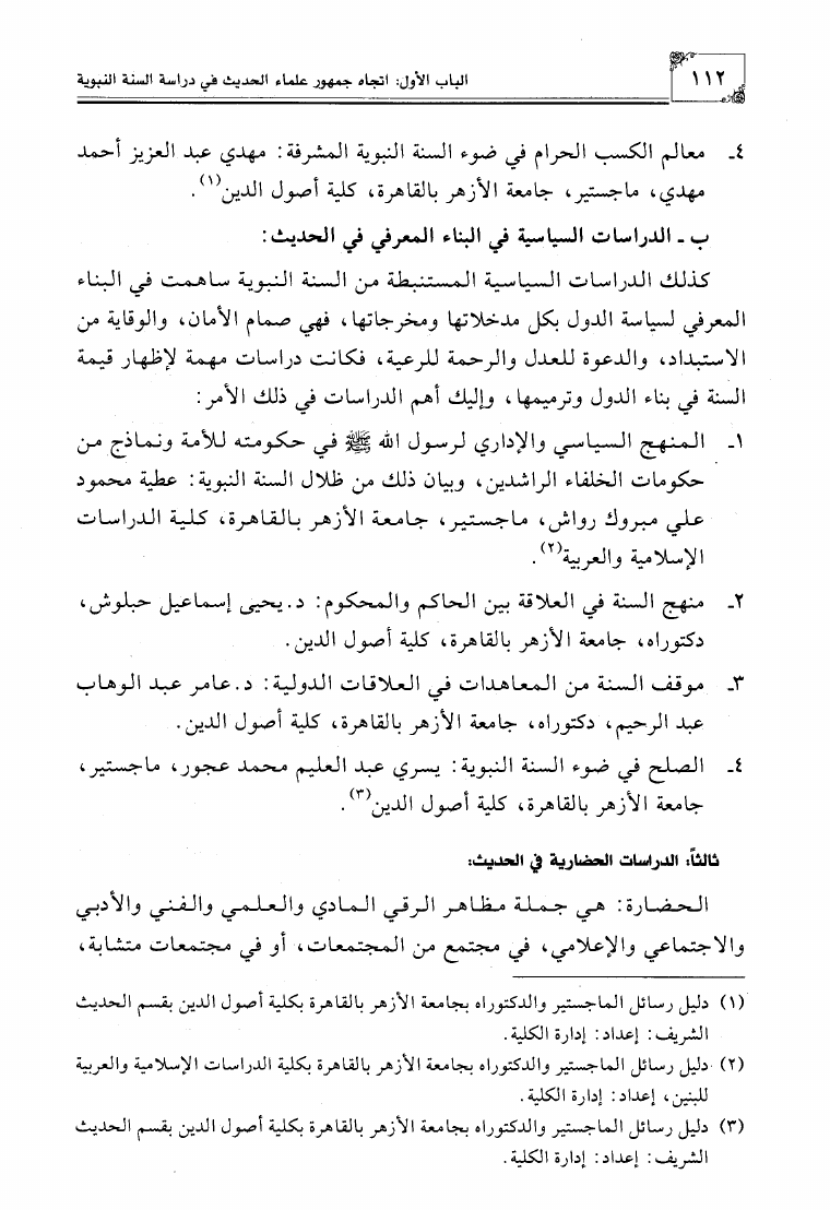 الإتجاهات المعاصرة في دراسة السنة النبوية في مصر وبلاد الشام