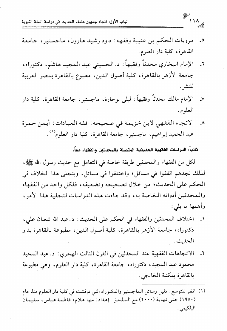 الإتجاهات المعاصرة في دراسة السنة النبوية في مصر وبلاد الشام