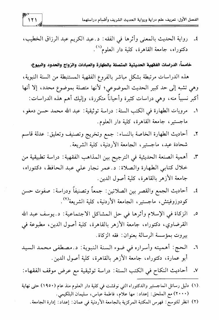 الإتجاهات المعاصرة في دراسة السنة النبوية في مصر وبلاد الشام