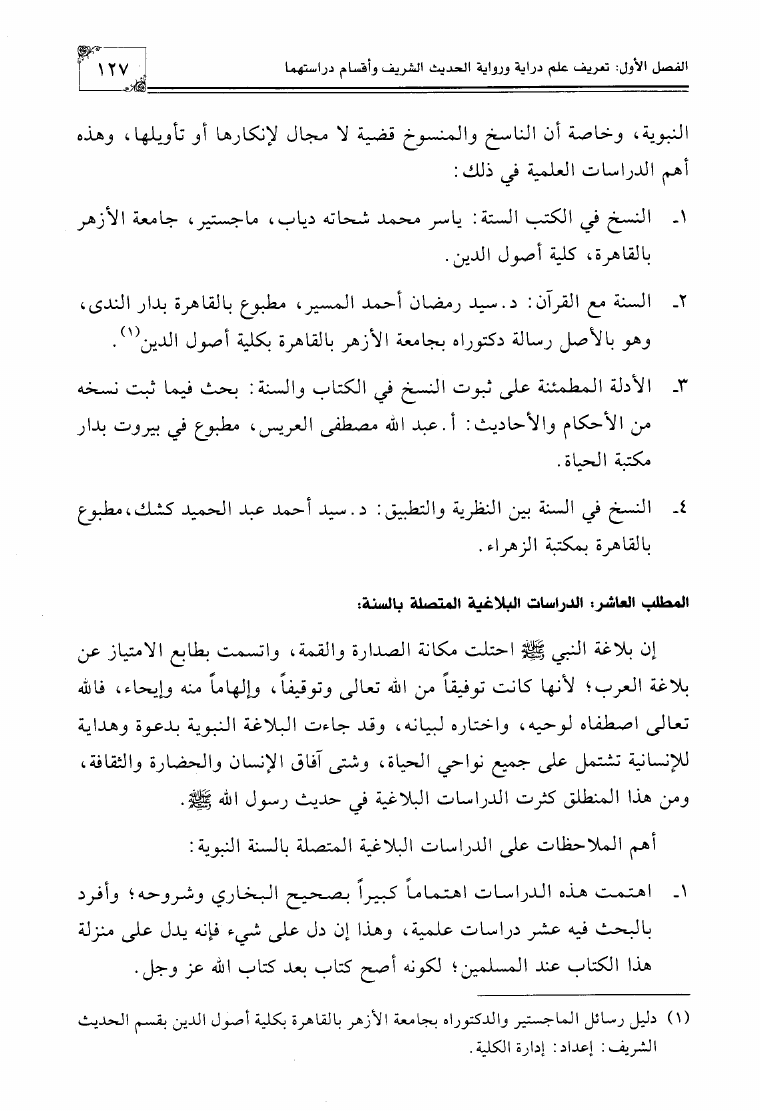 الإتجاهات المعاصرة في دراسة السنة النبوية في مصر وبلاد الشام