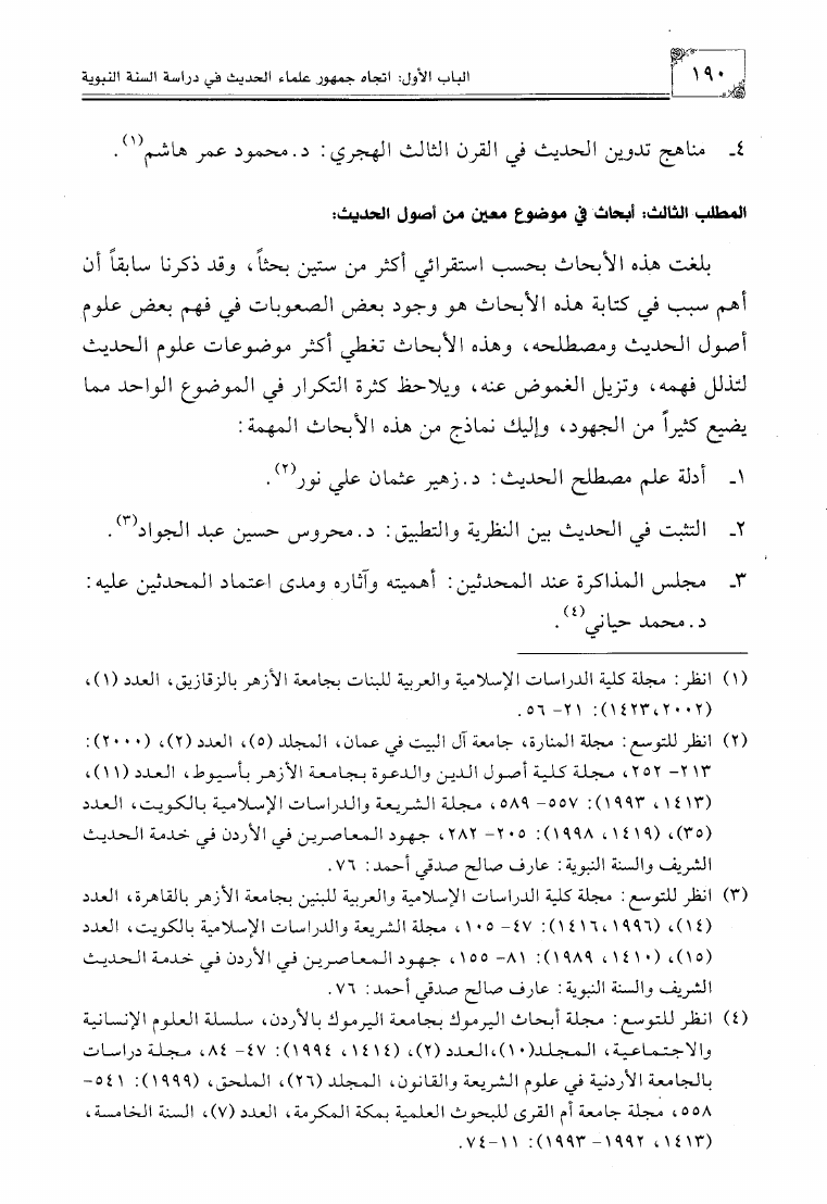 الإتجاهات المعاصرة في دراسة السنة النبوية في مصر وبلاد الشام