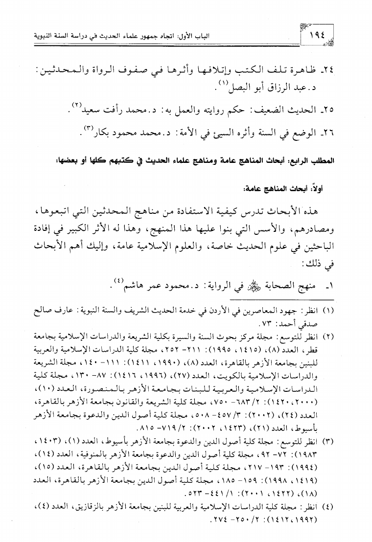 الإتجاهات المعاصرة في دراسة السنة النبوية في مصر وبلاد الشام