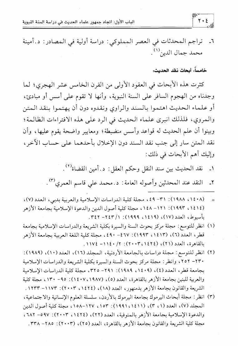الإتجاهات المعاصرة في دراسة السنة النبوية في مصر وبلاد الشام