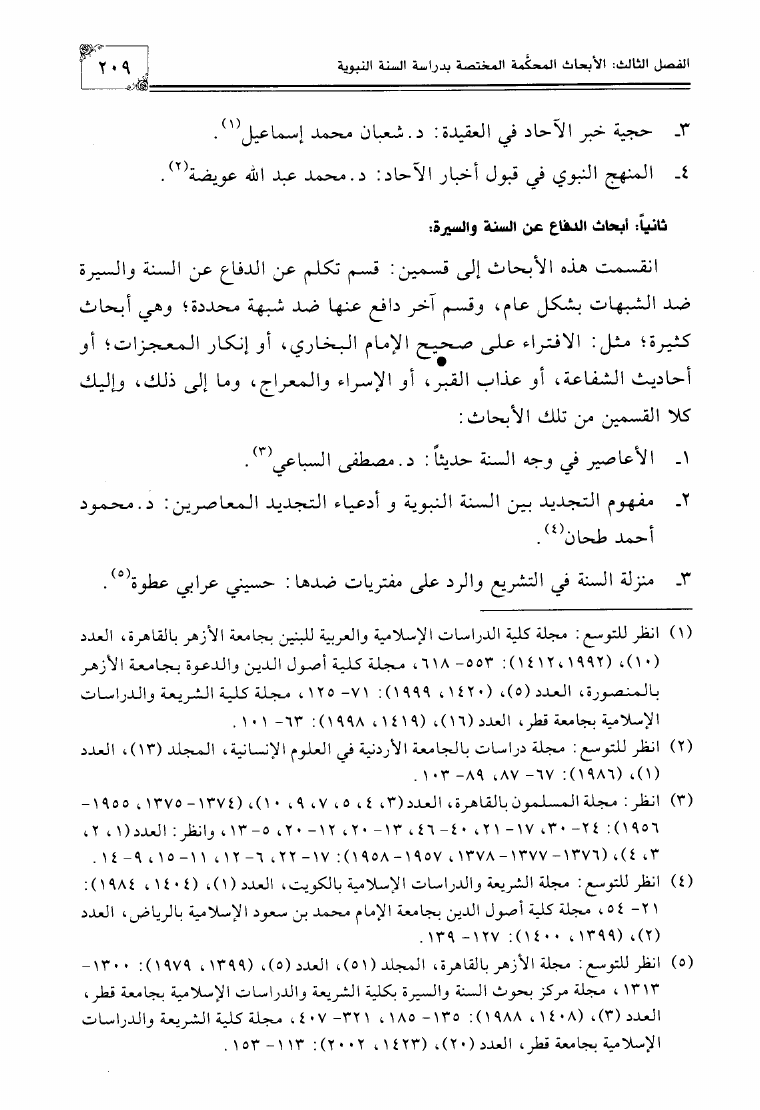 الإتجاهات المعاصرة في دراسة السنة النبوية في مصر وبلاد الشام