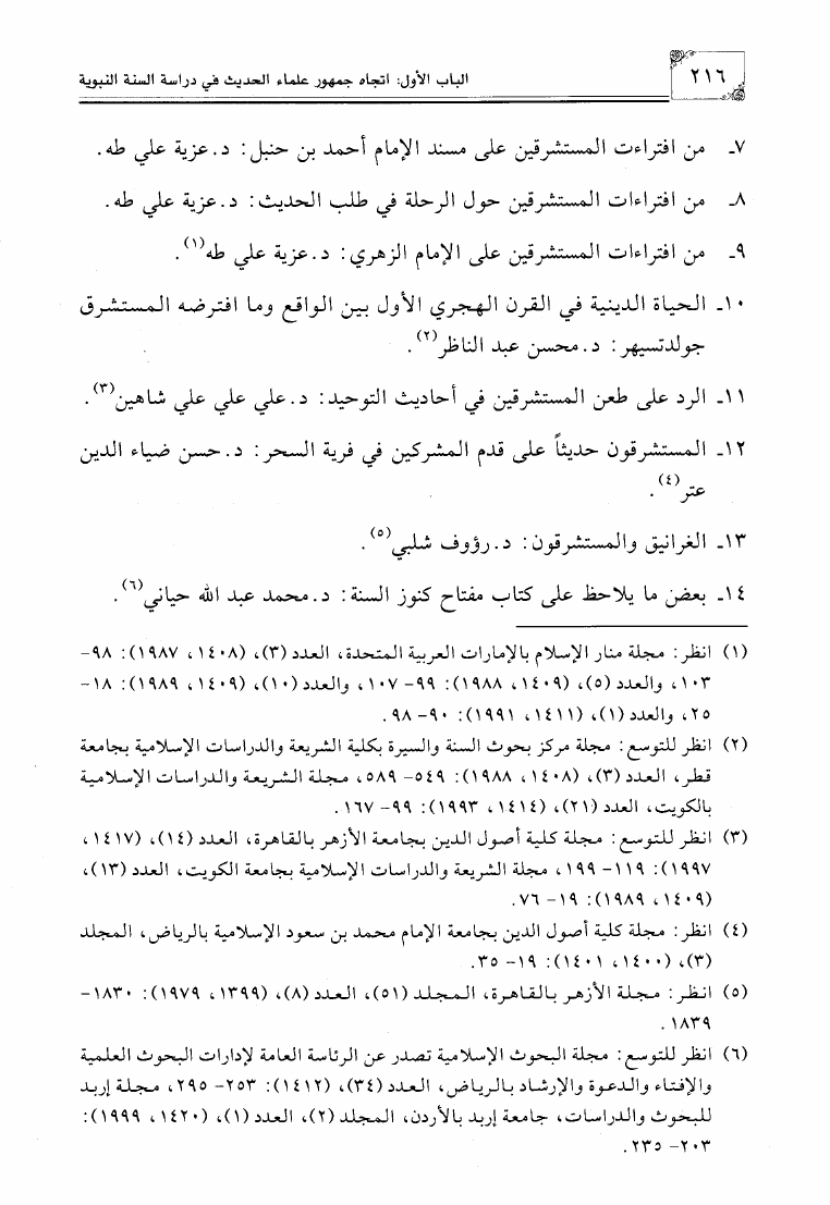 الإتجاهات المعاصرة في دراسة السنة النبوية في مصر وبلاد الشام