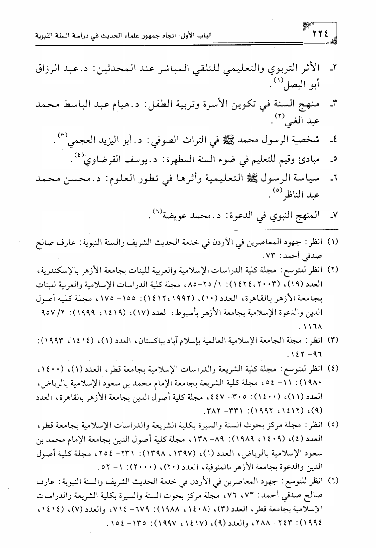 الإتجاهات المعاصرة في دراسة السنة النبوية في مصر وبلاد الشام