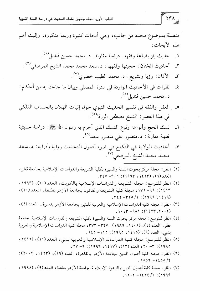 الإتجاهات المعاصرة في دراسة السنة النبوية في مصر وبلاد الشام