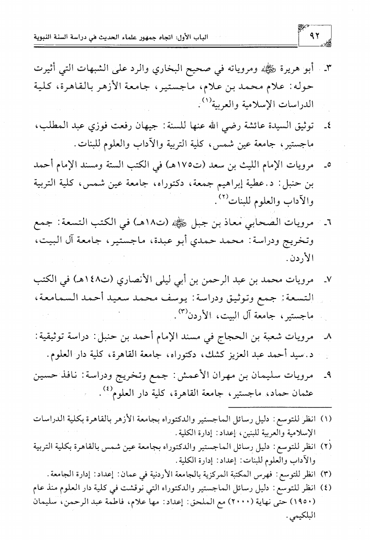 الإتجاهات المعاصرة في دراسة السنة النبوية في مصر وبلاد الشام