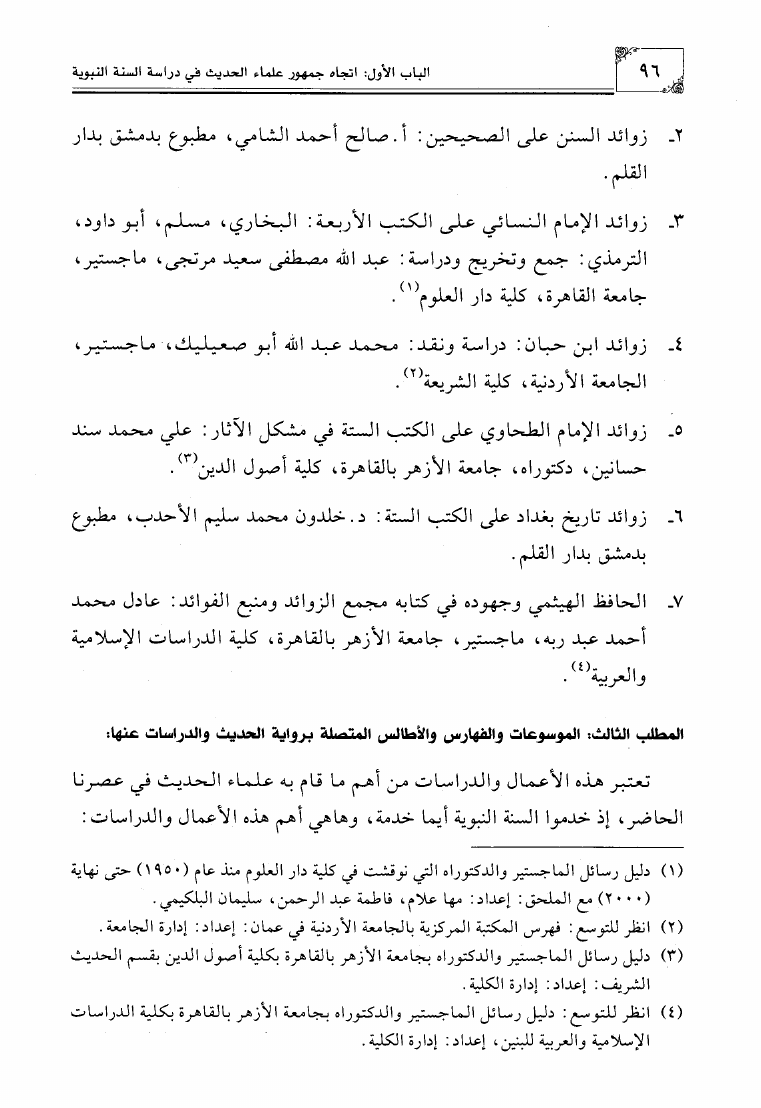 الإتجاهات المعاصرة في دراسة السنة النبوية في مصر وبلاد الشام
