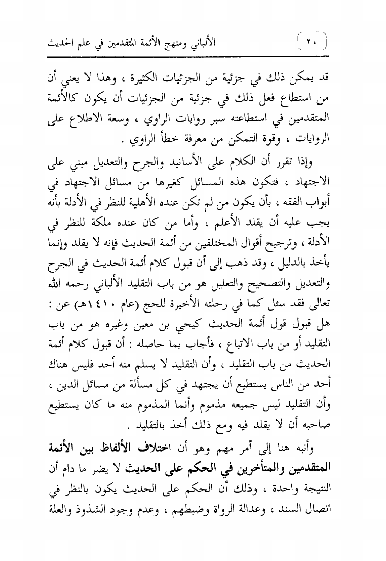 الألباني ومنهج الأئمة المتقدمين في علم الحديث