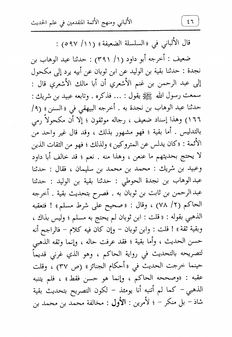 الألباني ومنهج الأئمة المتقدمين في علم الحديث