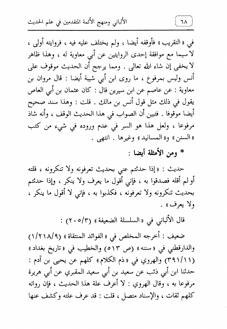 الألباني ومنهج الأئمة المتقدمين في علم الحديث