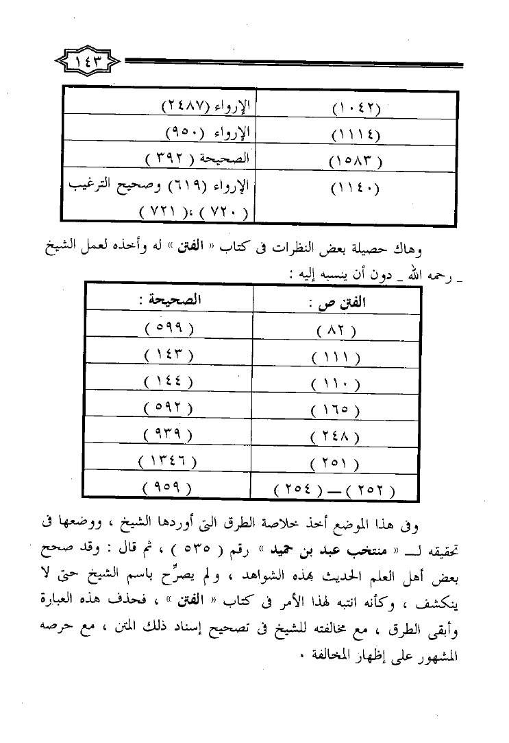نام کتاب : الإنتصار للحق وأهل العلم الكبار والرد على من رمى الشيخ محمد ناصر الدين الألباني رحمه الله بالتساهل نویسنده : أحمد بن إبراهيم أبو العينين جلد : 1 صفحه : 143