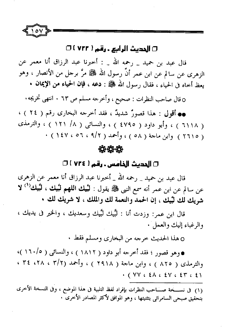 نام کتاب : الإنتصار للحق وأهل العلم الكبار والرد على من رمى الشيخ محمد ناصر الدين الألباني رحمه الله بالتساهل نویسنده : أحمد بن إبراهيم أبو العينين جلد : 1 صفحه : 157