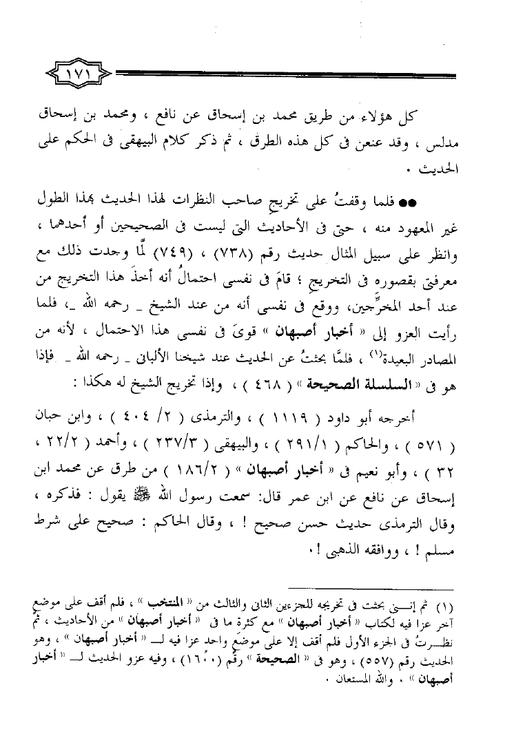 نام کتاب : الإنتصار للحق وأهل العلم الكبار والرد على من رمى الشيخ محمد ناصر الدين الألباني رحمه الله بالتساهل نویسنده : أحمد بن إبراهيم أبو العينين جلد : 1 صفحه : 171