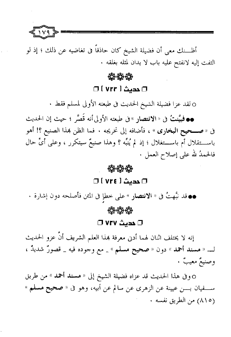 نام کتاب : الإنتصار للحق وأهل العلم الكبار والرد على من رمى الشيخ محمد ناصر الدين الألباني رحمه الله بالتساهل نویسنده : أحمد بن إبراهيم أبو العينين جلد : 1 صفحه : 179