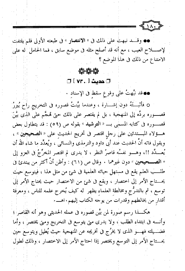 نام کتاب : الإنتصار للحق وأهل العلم الكبار والرد على من رمى الشيخ محمد ناصر الدين الألباني رحمه الله بالتساهل نویسنده : أحمد بن إبراهيم أبو العينين جلد : 1 صفحه : 180