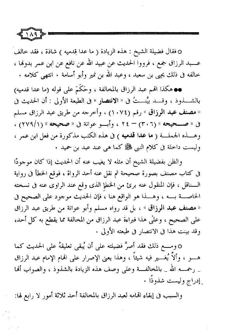 نام کتاب : الإنتصار للحق وأهل العلم الكبار والرد على من رمى الشيخ محمد ناصر الدين الألباني رحمه الله بالتساهل نویسنده : أحمد بن إبراهيم أبو العينين جلد : 1 صفحه : 189