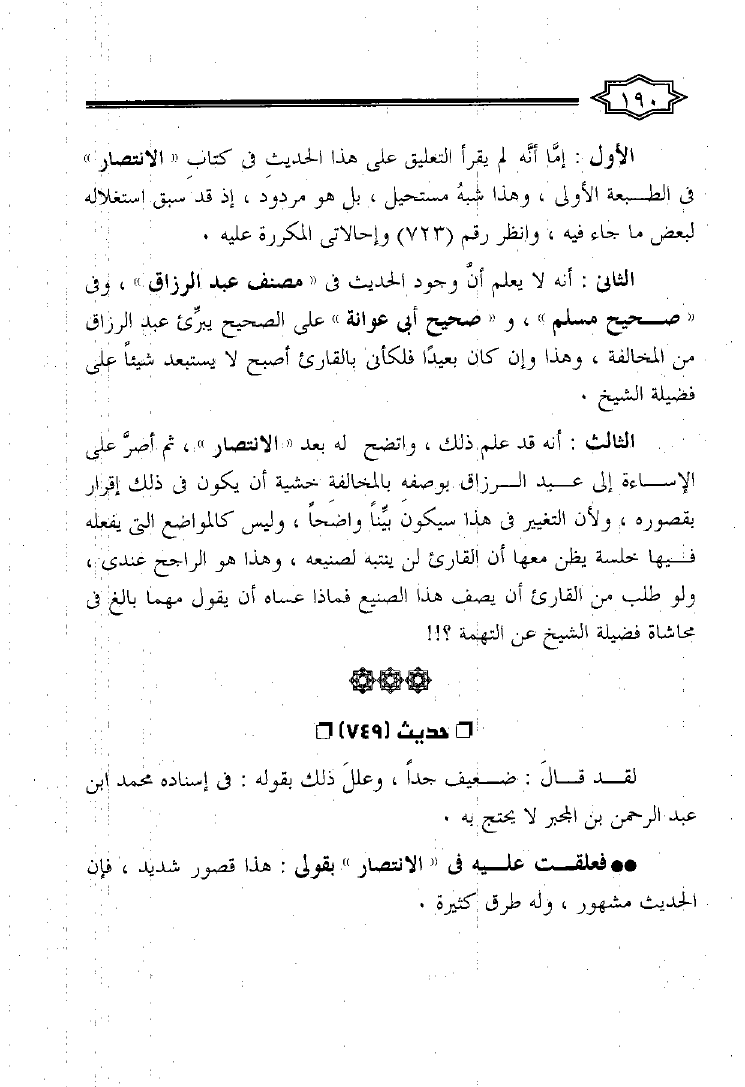 نام کتاب : الإنتصار للحق وأهل العلم الكبار والرد على من رمى الشيخ محمد ناصر الدين الألباني رحمه الله بالتساهل نویسنده : أحمد بن إبراهيم أبو العينين جلد : 1 صفحه : 190
