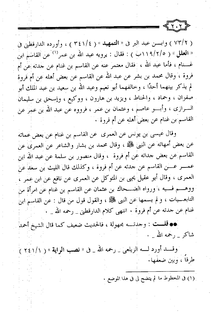 نام کتاب : الإنتصار للحق وأهل العلم الكبار والرد على من رمى الشيخ محمد ناصر الدين الألباني رحمه الله بالتساهل نویسنده : أحمد بن إبراهيم أبو العينين جلد : 1 صفحه : 202
