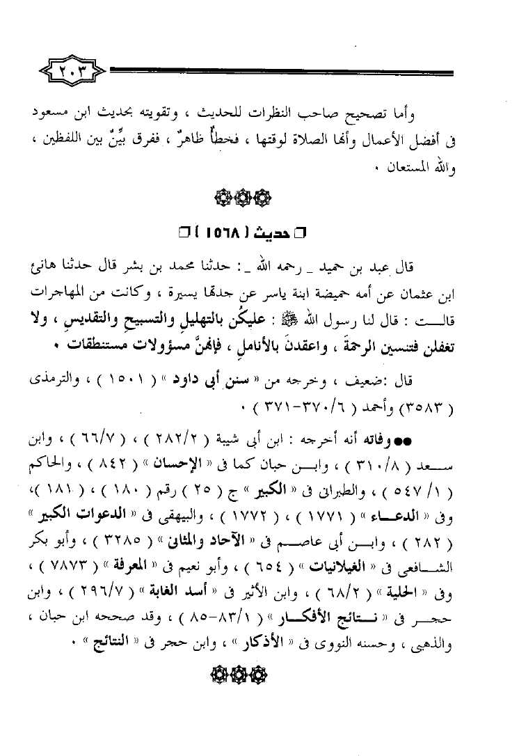 نام کتاب : الإنتصار للحق وأهل العلم الكبار والرد على من رمى الشيخ محمد ناصر الدين الألباني رحمه الله بالتساهل نویسنده : أحمد بن إبراهيم أبو العينين جلد : 1 صفحه : 203