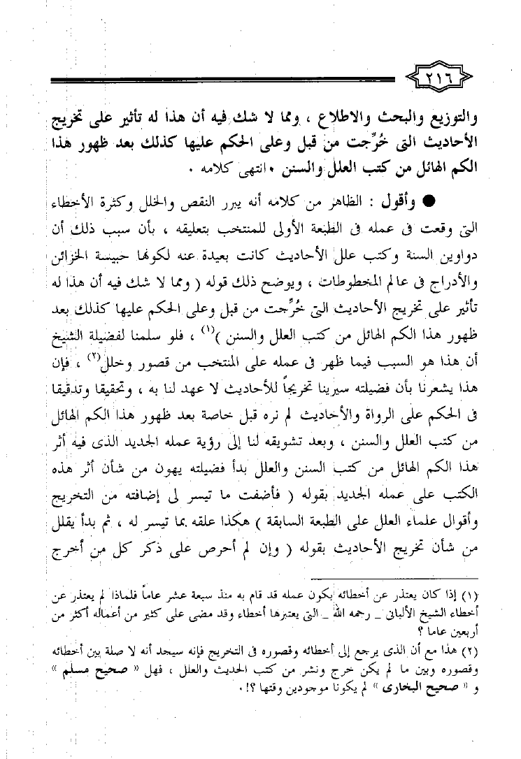 نام کتاب : الإنتصار للحق وأهل العلم الكبار والرد على من رمى الشيخ محمد ناصر الدين الألباني رحمه الله بالتساهل نویسنده : أحمد بن إبراهيم أبو العينين جلد : 1 صفحه : 216