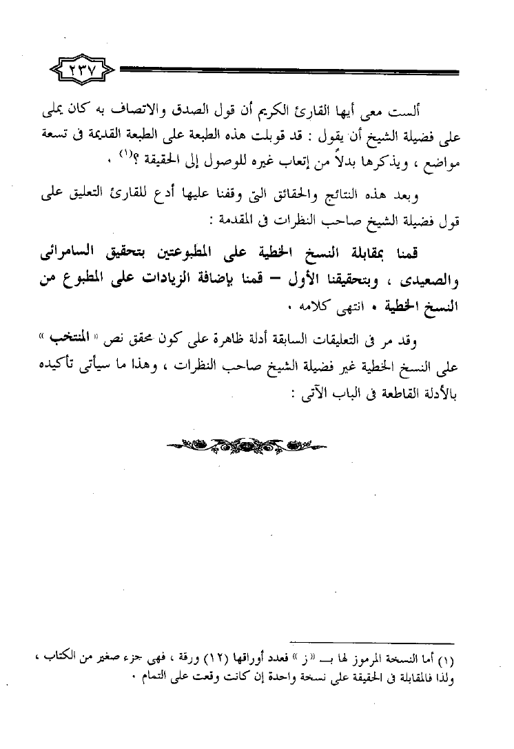 نام کتاب : الإنتصار للحق وأهل العلم الكبار والرد على من رمى الشيخ محمد ناصر الدين الألباني رحمه الله بالتساهل نویسنده : أحمد بن إبراهيم أبو العينين جلد : 1 صفحه : 237