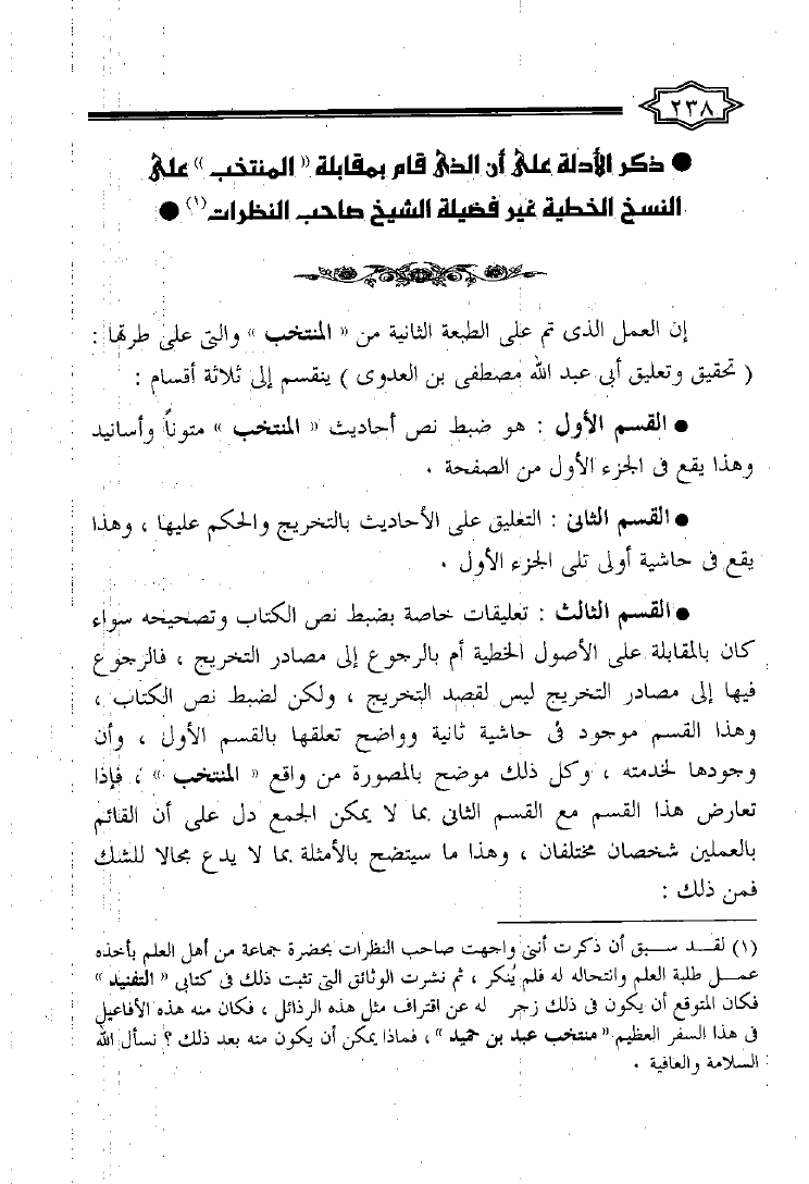 نام کتاب : الإنتصار للحق وأهل العلم الكبار والرد على من رمى الشيخ محمد ناصر الدين الألباني رحمه الله بالتساهل نویسنده : أحمد بن إبراهيم أبو العينين جلد : 1 صفحه : 238