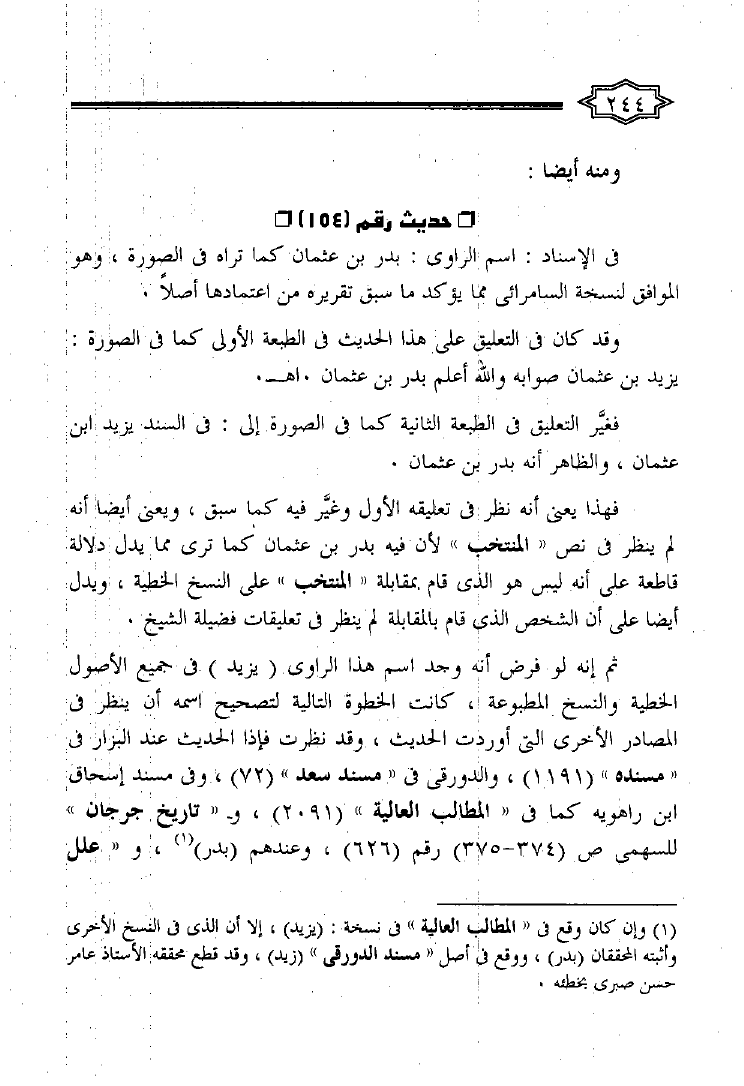 نام کتاب : الإنتصار للحق وأهل العلم الكبار والرد على من رمى الشيخ محمد ناصر الدين الألباني رحمه الله بالتساهل نویسنده : أحمد بن إبراهيم أبو العينين جلد : 1 صفحه : 244
