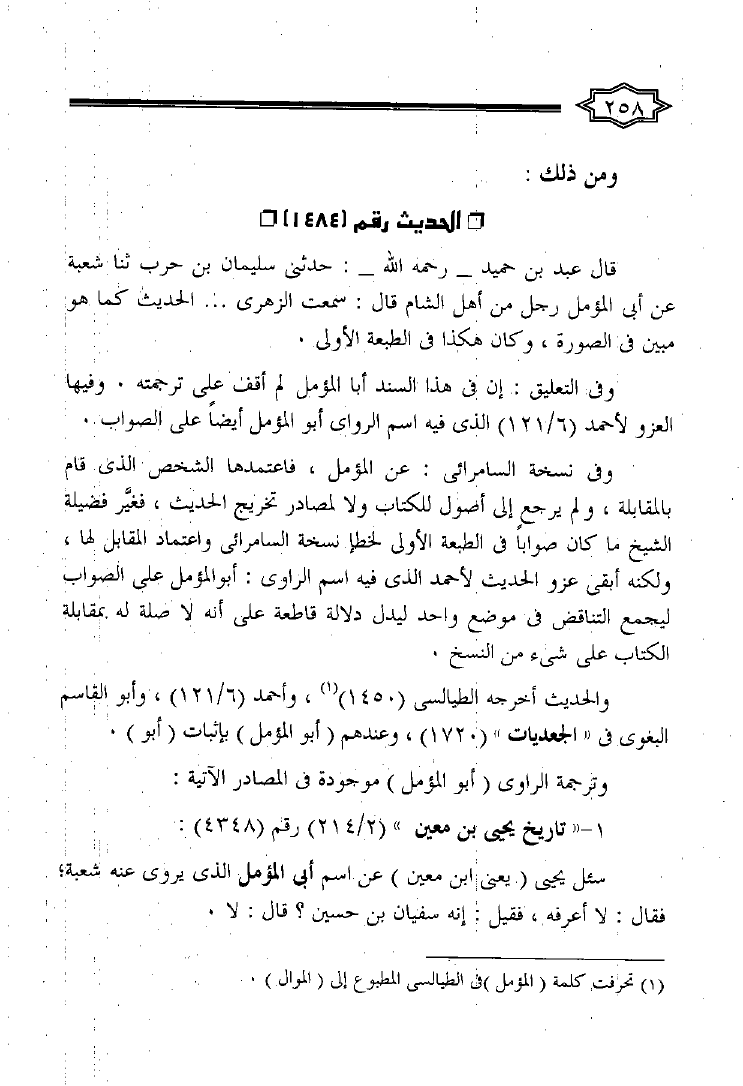 نام کتاب : الإنتصار للحق وأهل العلم الكبار والرد على من رمى الشيخ محمد ناصر الدين الألباني رحمه الله بالتساهل نویسنده : أحمد بن إبراهيم أبو العينين جلد : 1 صفحه : 258