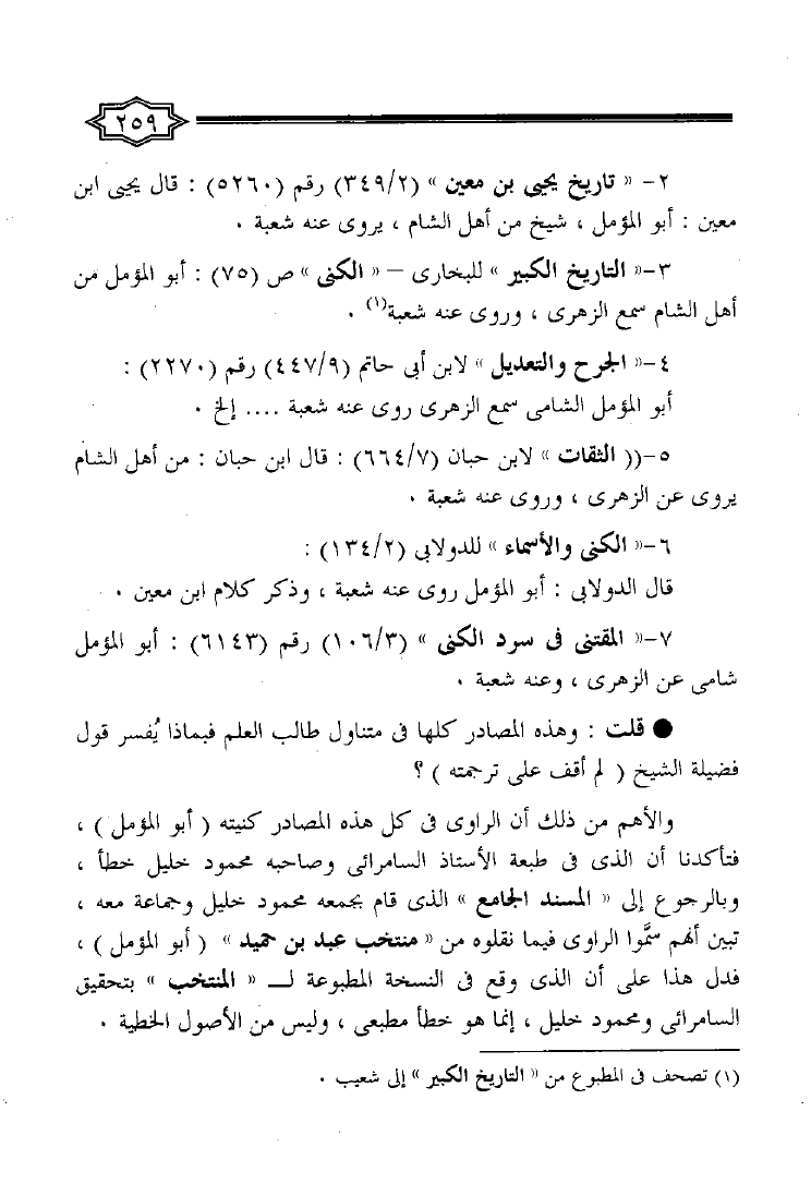 نام کتاب : الإنتصار للحق وأهل العلم الكبار والرد على من رمى الشيخ محمد ناصر الدين الألباني رحمه الله بالتساهل نویسنده : أحمد بن إبراهيم أبو العينين جلد : 1 صفحه : 259