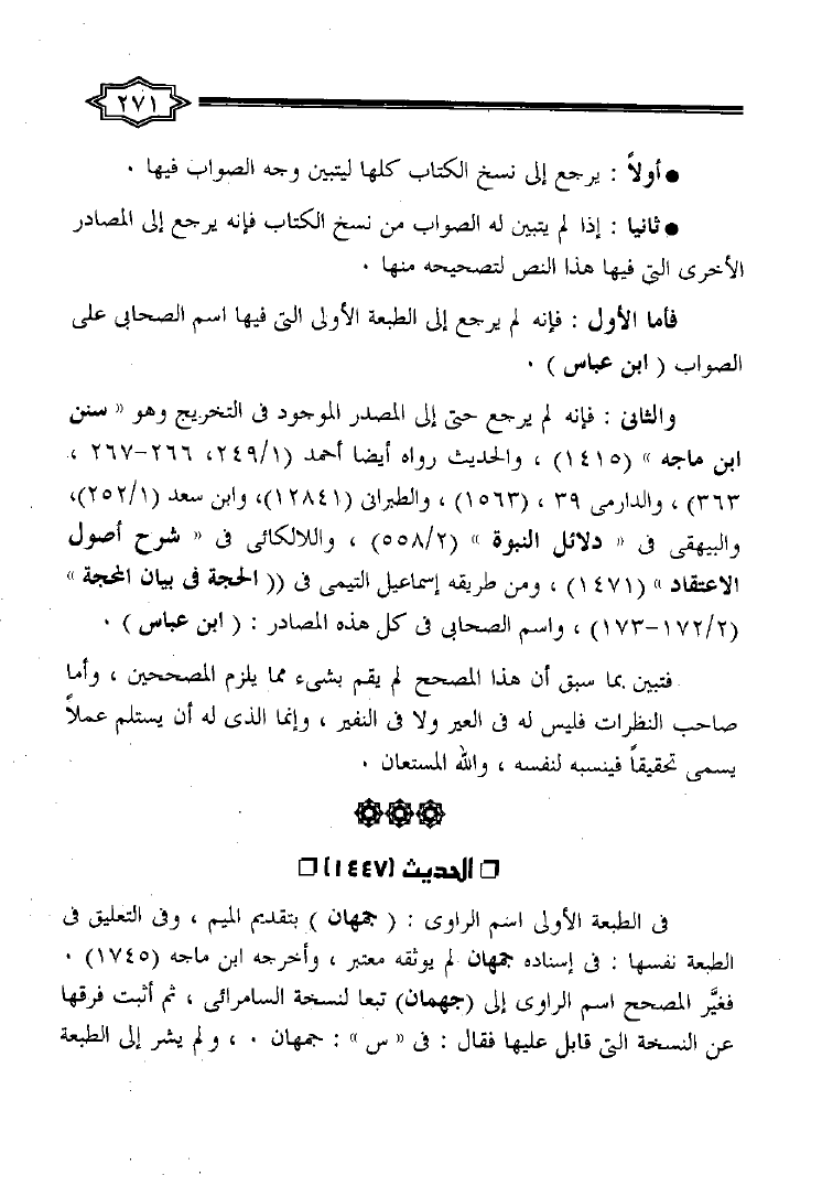 نام کتاب : الإنتصار للحق وأهل العلم الكبار والرد على من رمى الشيخ محمد ناصر الدين الألباني رحمه الله بالتساهل نویسنده : أحمد بن إبراهيم أبو العينين جلد : 1 صفحه : 271