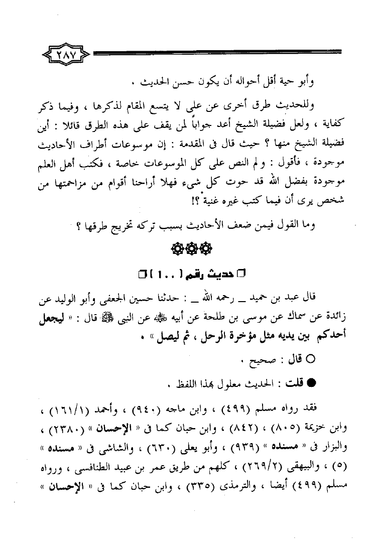نام کتاب : الإنتصار للحق وأهل العلم الكبار والرد على من رمى الشيخ محمد ناصر الدين الألباني رحمه الله بالتساهل نویسنده : أحمد بن إبراهيم أبو العينين جلد : 1 صفحه : 287