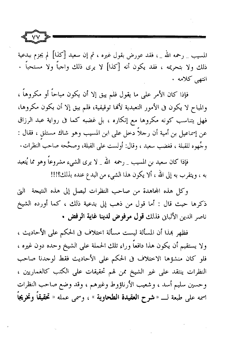 نام کتاب : الإنتصار للحق وأهل العلم الكبار والرد على من رمى الشيخ محمد ناصر الدين الألباني رحمه الله بالتساهل نویسنده : أحمد بن إبراهيم أبو العينين جلد : 1 صفحه : 77