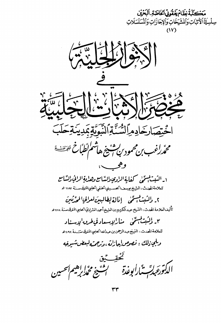 الأنوار الجلية في مختصر الأثبات الحلبية