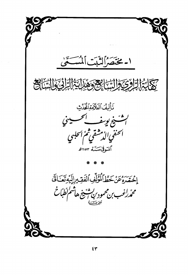 الأنوار الجلية في مختصر الأثبات الحلبية